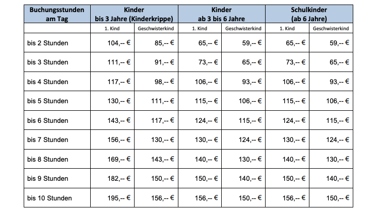 Die Betreuungsgebühren für das Montessori-Kinderhaus in Amerdingen sind aktuell wie folgt: